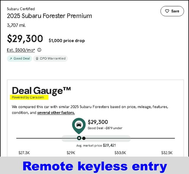 Subaru Certified Pre-Owned Details: * Vehicle History * Roadside Assistance * Transferable W, 4-Wheel Disc Brakes, 6 Speakers, ABS brakes, Air Conditioning, AM/FM radio: SiriusXM with 360L, Automatic temperature control, Brake assist, Electronic Stability Control, Emergency communication system: STARLINK Safety and Security (Subscription Required), Exterior Parking Camera Rear, Four wheel independent suspension, Front dual zone A/C, Front fog lights, Fully automatic headlights, Heated door mirrors, Heated Front Bucket Seats, Outside temperature display, Power door mirrors, Power driver seat, Power moonroof: Panoramic, Premium Textured Cloth Upholstery, Radio data system, Radio: Subaru STARLINK 11.6" Multimedia Plus System, Rear window defroster, Rear window wiper, Remote keyless entry, Speed control, Speed-sensing steering, Split folding rear seat, Standard Model, STARLINK/Apple CarPlay/Android Auto, Steering wheel mounted audio controls, Telescoping steering wheel, Tilt steering wheel, Wheels: 17" x 7.0 J Dark Metallic Aluminum-Alloy. Certified. Subaru Certified Pre-Owned Details: