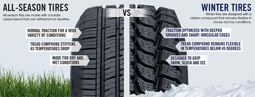 Winter tires have a soft rubber compound that remains flexible as temperatures drop to better conform to the road for more controlled handling. They also have unique tread patterns with wider grooves to enhance traction on snow and ice by providing channels to drain water and expel snow. Typically, they have deep sipes, which are small slits in the tread that help cut through water and slush, avoiding hydroplaning, and improving grip. Grip is critical, not just to avoid getting stuck, but to help ensure that the car can stop and steer. The superior traction that winter tires deliver, as much as a 25 to 50 percent more than all-season tires, can very well be the safety margin needed to stop in time or turn to avoid trouble.