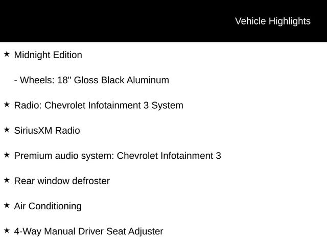 ⢠Chevrolet Infotainment 3 system with SiriusXM Radio