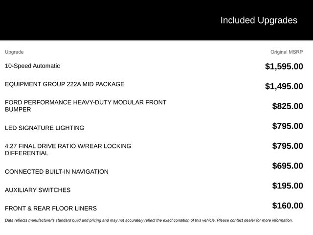 ⢠4.27 Final Drive Ratio w/Rear Locking Differential