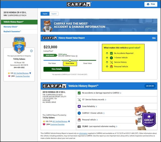 This meticulously maintained CR-V EX-L boasts a low mileage of just 33,865, ensuring you can enjoy many more miles of exceptional performance and reliability. With its impressive fuel efficiency, delivering 27 city/33 highway MPG, this SUV will keep you moving forward with confidence.