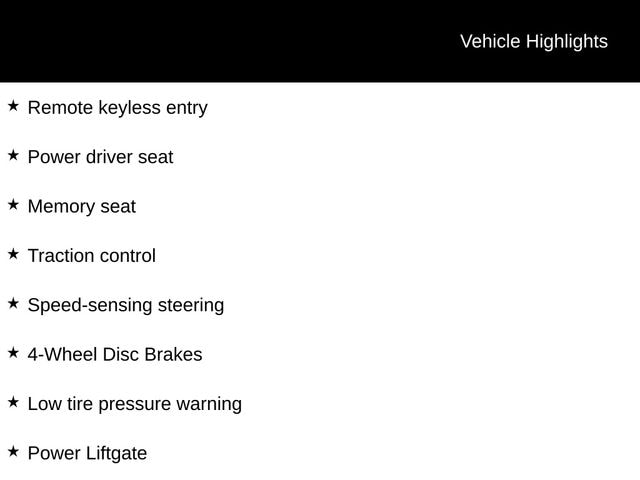 ⢠Stay connected and in control with a host of driver-centric amenities, such as a power liftgate, blind spot monitoring, and a rearview camera.