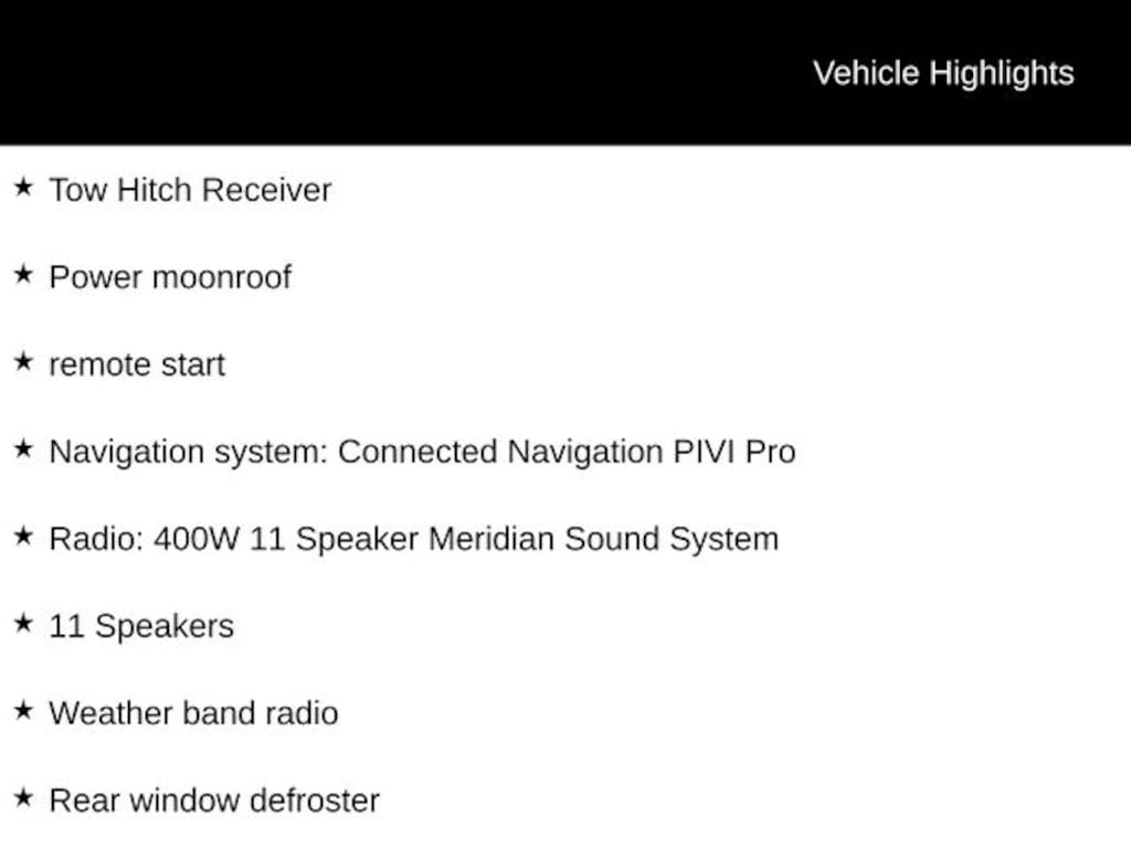 ⢠Radio: 400W 11 Speaker Meridian Sound System