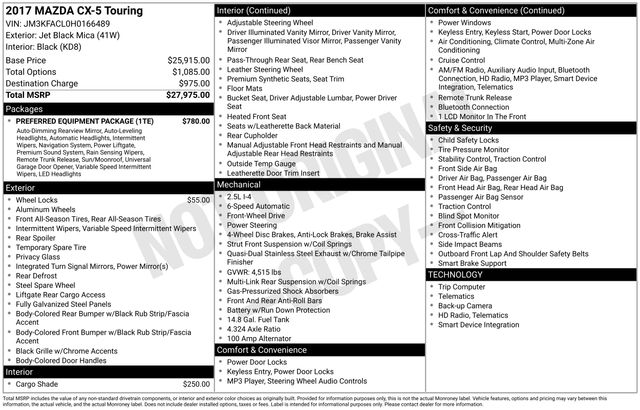 This exceptional 2017 Mazda CX-5 Touring is a true standout in its class, offering a captivating blend of style, performance, and technology. With its low mileage and well-maintained condition, this vehicle is poised to deliver years of exceptional service and enjoyment. We invite you to experience the exceptional craftsmanship and refined driving dynamics of the CX-5 Touring for yourself. Schedule a test drive today and discover the difference that Mazda's commitment to excellence can make.