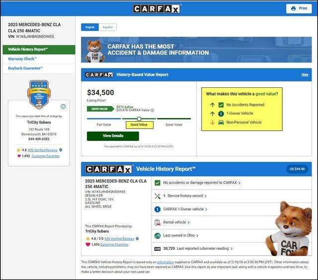 Powered by a 2.0L I4 Turbocharged engine and equipped with 4MATIC® all-wheel drive, this CLA 250 delivers an exhilarating driving experience with exceptional efficiency. The 8-speed dual-clutch transmission provides lightning-fast gear changes, while the advanced suspension system ensures a smooth and composed ride, even on winding roads.
