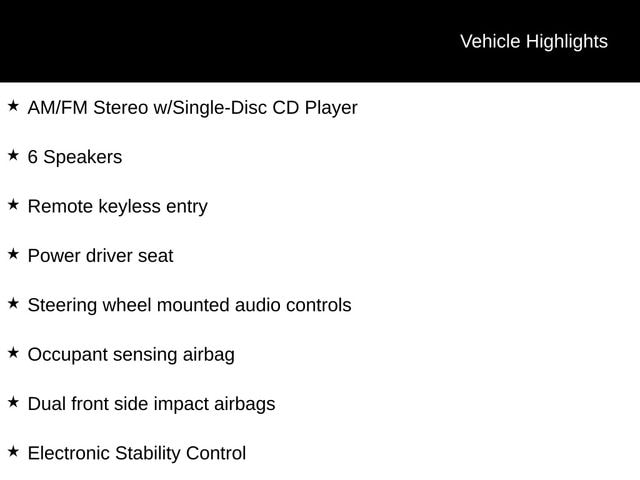 - 6 Speakers, AM/FM Stereo with Single-Disc CD Player, and Steering Wheel Mounted Audio Controls for your entertainment needs.