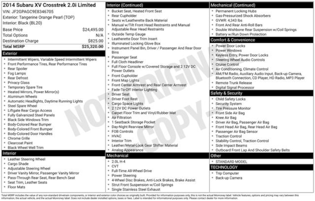 With its impressive combination of style, capability, and premium features, this 2014 Subaru XV Crosstrek 2.0i Limited is the perfect companion for your adventures. Experience the difference for yourself and visit our showroom today. We're confident you'll be impressed by this exceptional vehicle.
