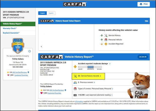 Purchased New & Serviced Here at TRICITY SUBARU !!