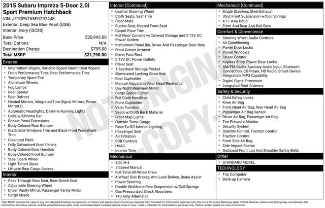 Whether you're commuting, running errands, or embarking on a weekend getaway, this 2015 Subaru Impreza 2.0i Sport Premium is the perfect companion. Experience the exceptional value, reliability, and performance that Subaru is known for. Visit our showroom today and let us demonstrate why this Impreza should be your next vehicle.