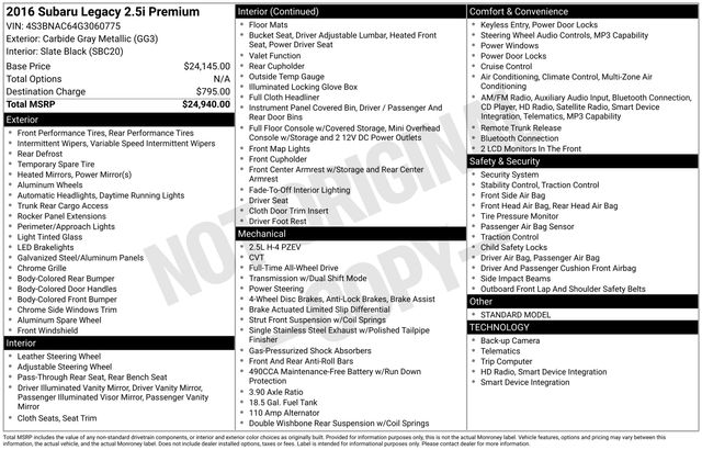 2016 Subaru Legacy 2.5i Carbide Gray Metallic