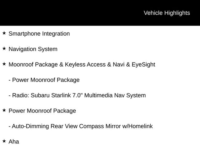 ⢠Moonroof Package & Keyless Access & Navigation & EyeSight $3,090.00 Customer Value!!