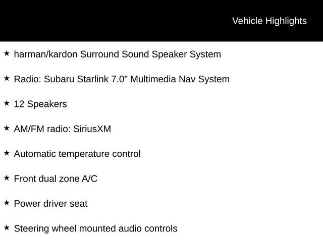 ⢠Radio: Subaru Starlink 7.0" Multimedia Nav System