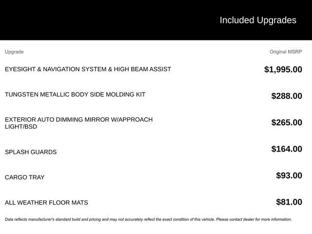 ⢠Radio: Subaru Starlink 7.0" Multimedia Nav System