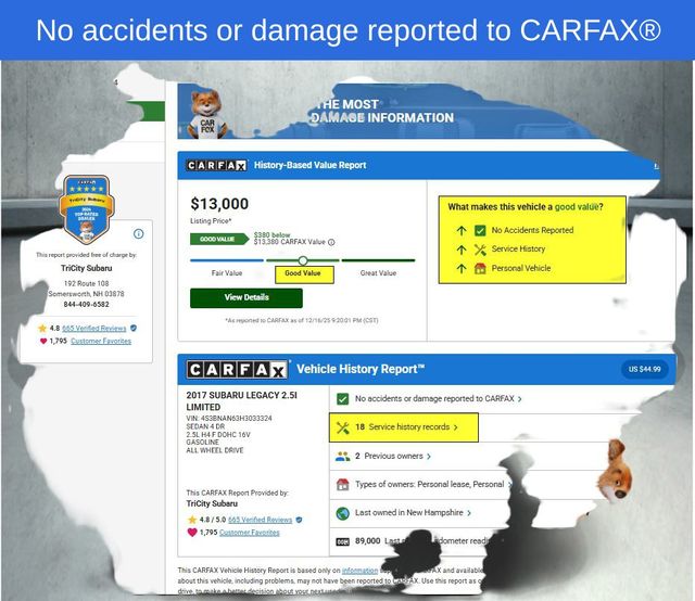 This 2017 Subaru Legacy 2.5i Limited represents an exceptional value, with its meticulously maintained condition, impressive array of premium features, and the peace of mind that comes with Subaru's renowned reliability and safety. We invite you to experience the difference for yourself. Schedule a test drive today and discover how this exceptional sedan can elevate your driving experience.