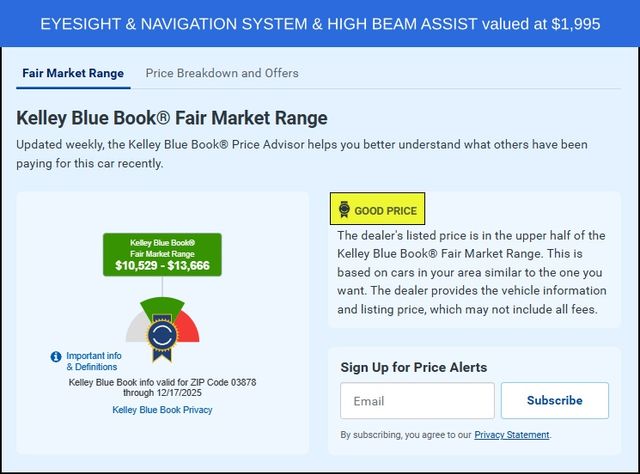 ⢠Radio: Subaru Starlink 7.0" Multimedia Nav System