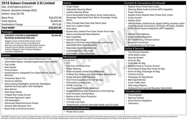 Experience the exceptional capabilities and premium features of the 2018 Subaru Crosstrek 2.0i Limited. Visit our showroom today and discover why this versatile crossover is the perfect choice for your next vehicle.