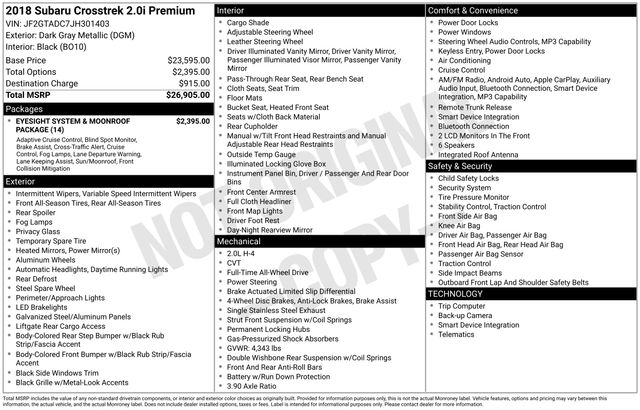 2018 Subaru Crosstrek 2.0i Premium Dgm Clean CARFAX.