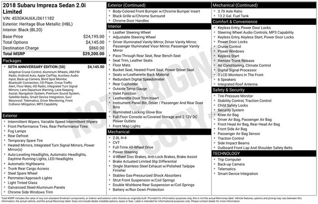 Elevate your driving experience with this exceptional 2018 Subaru Impreza 2.0i Limited. This 50th Anniversary Edition model boasts a remarkable array of premium features that will captivate the discerning driver.