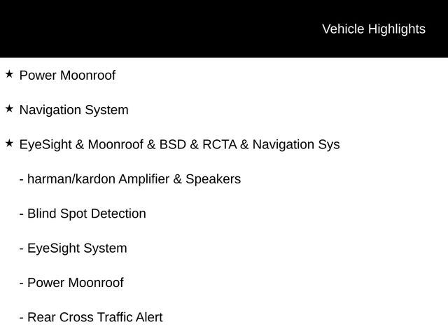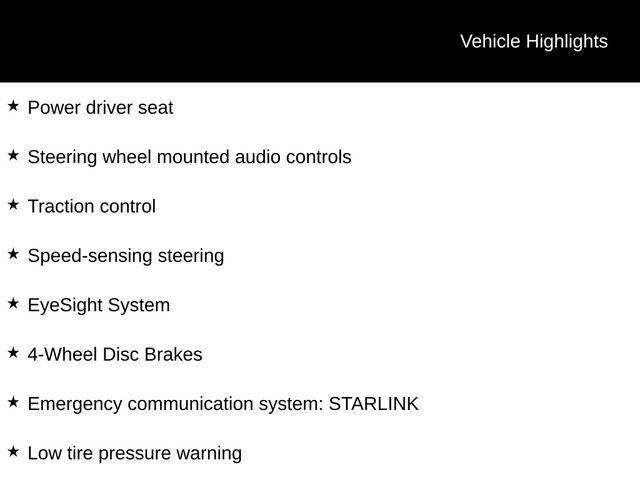 ⢠EyeSight System with Pre-Collision Braking, Adaptive Cruise Control, and Lane Keep Assist