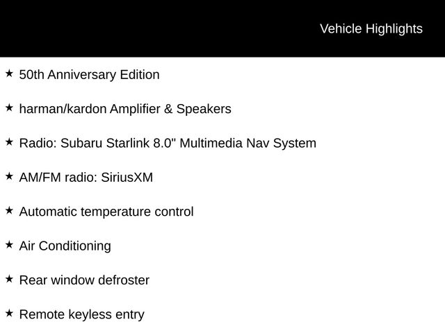 Step inside and you'll be greeted by a spacious and well-appointed cabin, featuring premium touches like the harman/kardon audio system, power-adjustable driver's seat, and dual-zone automatic climate control. The Subaru Starlink infotainment system with an 8-inch touchscreen puts a world of connectivity and convenience at your fingertips, including Apple CarPlay, Android Auto, and SiriusXM satellite radio.