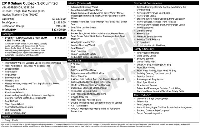 Elevate your driving experience with this stunning 2018 Subaru Outback 3.6R Limited. Boasting a sleek Blue exterior and a meticulously crafted interior, this Outback is more than just a capable all-wheel-drive crossover â" it's a true expression of refined style and uncompromising performance.