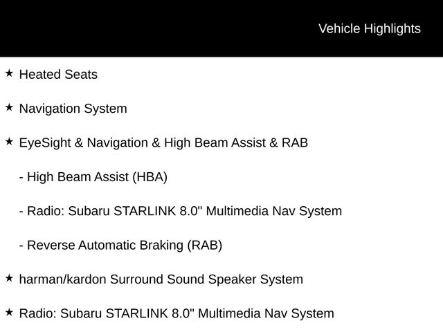 Designed with your safety in mind, this Outback is equipped with Subaru's renowned EyeSight Driver Assist Technology, featuring Adaptive Cruise Control, Pre-Collision Braking, and Lane Departure Warning. The Navigation System and premium audio package further enhance your driving experience, keeping you connected and entertained.