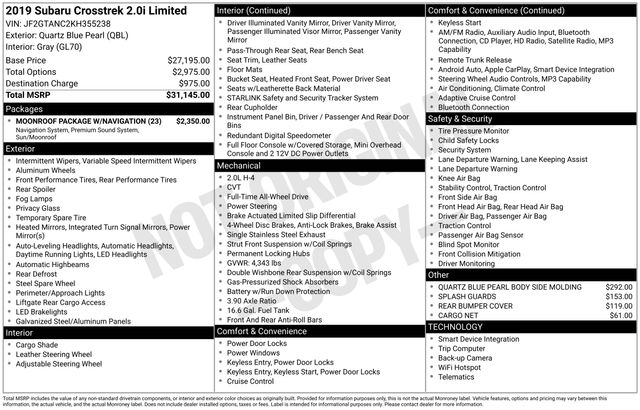 2019 Subaru Crosstrek 2.0i Limited Quartz Blue Pearl Clean CARFAX.