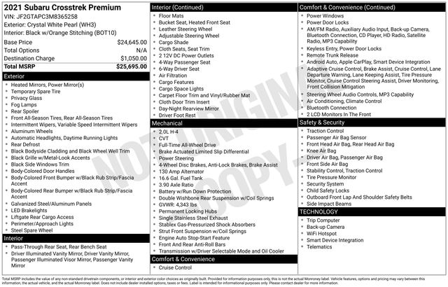 2021 Subaru Crosstrek Premium Crystal White Pearl
