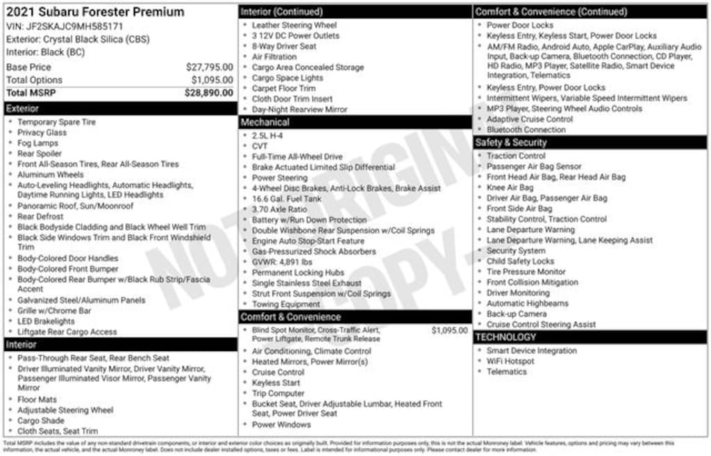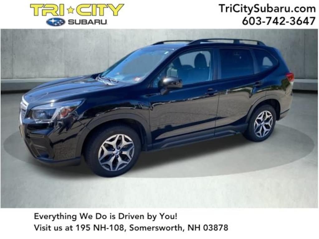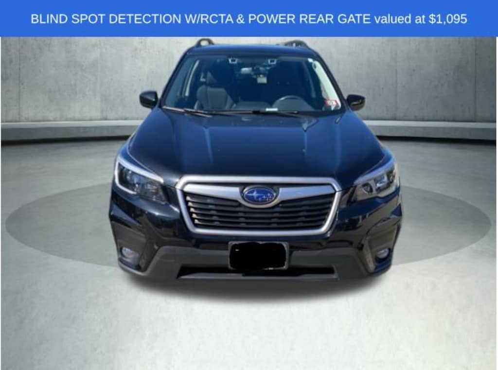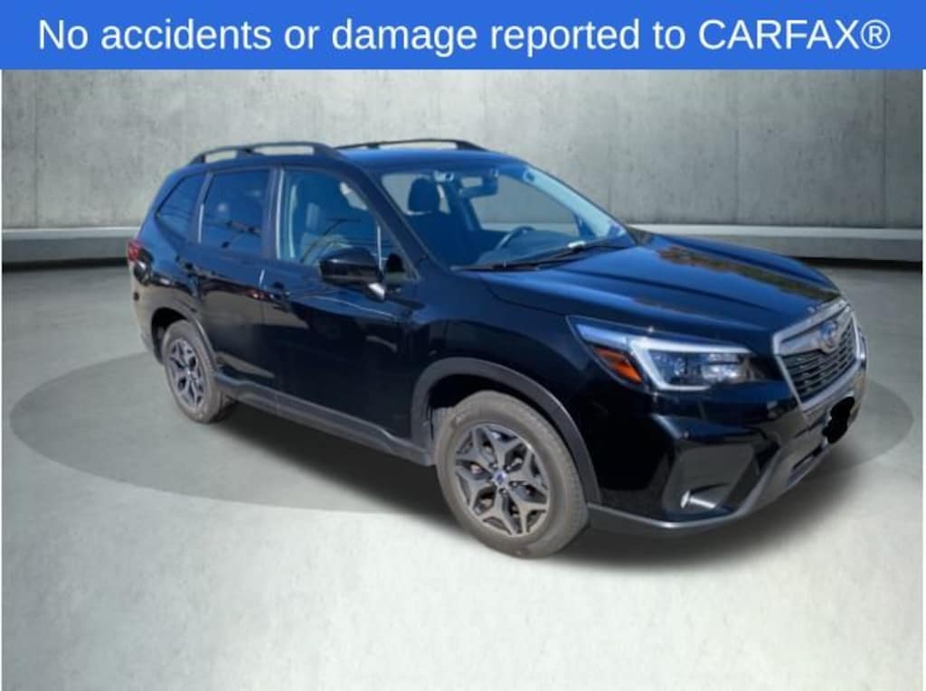 2021 Subaru Forester Premium Crystal Black Silica 6 Speakers, Blind Spot Detection (BSD), Blind Spot Detection w/RCTA & Power Rear Gate, CD player, Cloth Upholstery, Driver's Seatback Divided Pocket, Emergency communication system: STARLINK Safety and Security (Subscription Required), Exterior Parking Camera Rear, Front fog lights, Fully automatic headlights, Heated door mirrors, Heated Front Bucket Seats, Multi-Function High Grade Display, Power door mirrors, Power driver seat, Power moonroof: Panoramic, Power Rear Gate w/Automatic Close & Height Memory, Radio: Subaru Starlink 6.5" Multimedia Plus System, Remote keyless entry, Speed control, Split folding rear seat, STARLINK/Apple CarPlay/Android Auto, Steering wheel mounted audio controls, Telescoping steering wheel, Tilt steering wheel, Wheels: 17" x 7.0J Black Machine Finish Alloy. Clean CARFAX. Odometer is 29411 miles below market average!