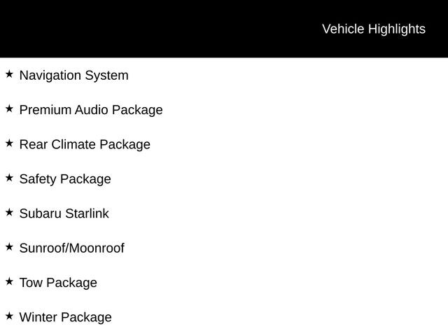 The Technology Package further enhances the Ascent's capabilities, offering a Subaru STARLINK 8.0" Multimedia Navigation System, a premium harman/kardon sound system, and a panoramic power moonroof, among other advanced technologies.