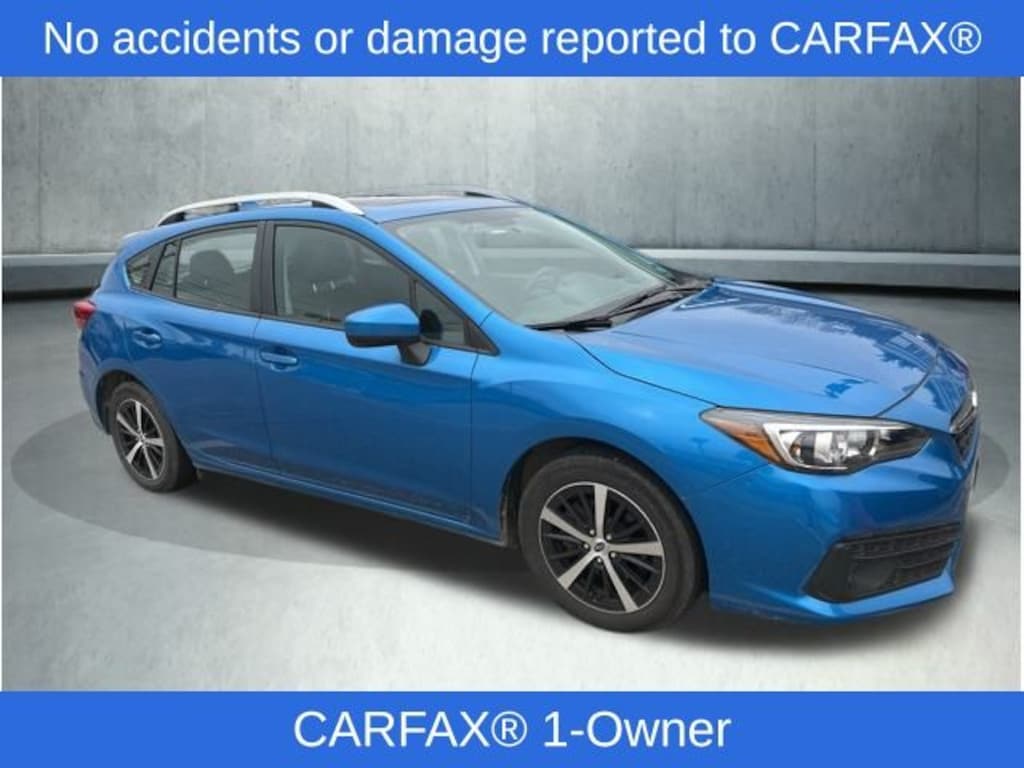 2022 Subaru Impreza Premium Ocean Blue Pearl 6 Speakers, 6-Way Power Driver's Seat, Blind Spot Detection (BSD), BSD/RCTA & Moonrf & Keyless Access & Pwr Dr. Seat, CD player, Cloth Upholstery, Dual-Illuminated Visor Vanity Mirror, Emergency communication system, Exterior Parking Camera Rear, Front fog lights, Heated door mirrors, Heated Front Bucket Seats, Keyless Access w/Push-Button Start, Power door mirrors, Power Moonroof, Radio: Subaru STARLINK 6.5" Multimedia Plus System, Rear Cross-Traffic Alert (RCTA) System, Remote keyless entry, Speed control, Split folding rear seat, STARLINK/Apple CarPlay/Android Auto, Steering wheel mounted audio controls, Telescoping steering wheel, Tilt steering wheel, Wheels: 16" x 6.5" Machine Finish J Aluminum-Alloy. CARFAX One-Owner. Clean CARFAX. Odometer is 12374 miles below market average!