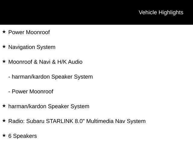 - Radio: Subaru STARLINK 8.0" Multimedia Nav System
