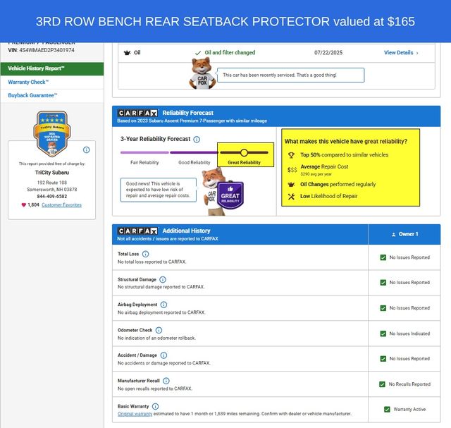 Offering seating for up to eight passengers, the Ascent Premium is the perfect companion for family adventures and weekend getaways. Indulge in the premium comfort of the heated front bucket seats, and let the 3rd-row bench seat and 2nd-row captain's chairs accommodate your loved ones with ease. The Aero Crossbar Set and 3rd-Row Sunshade further enhance the Ascent's versatility, allowing you to tailor your driving experience to your needs.