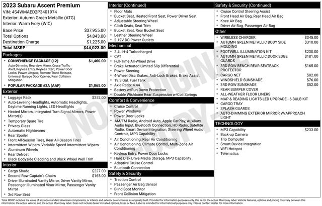 Experience the Epitome of Versatility and Refinement with the 2023 Subaru Ascent Premium