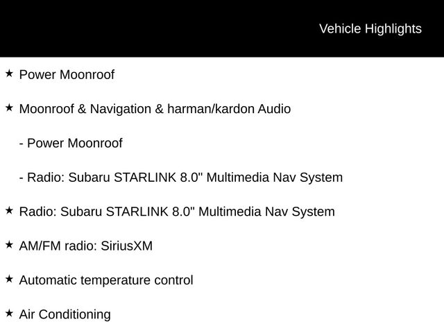 ⢠Radio: Subaru STARLINK 8.0" Multimedia Nav System