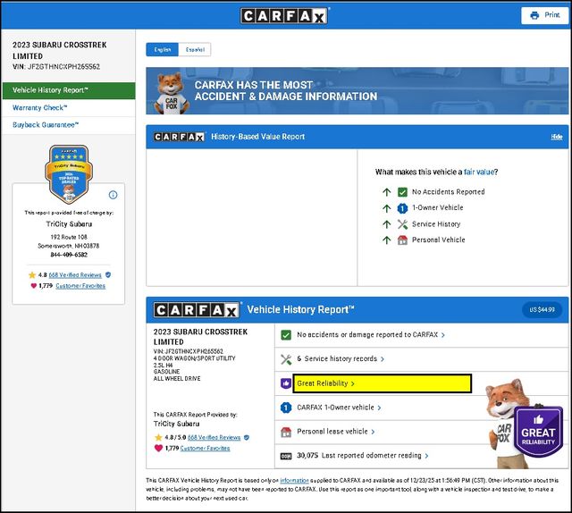 Purchased New & Serviced Here at TRICITY SUBARU !!