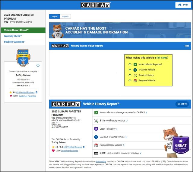 Boasting a robust 2.5L 4-cylinder DOHC 16V engine paired with Subaru's renowned Lineartronic CVT and Symmetrical All-Wheel Drive system, the Forester Premium delivers a confident and responsive performance, with an impressive EPA-estimated 26 city/33 highway MPG.