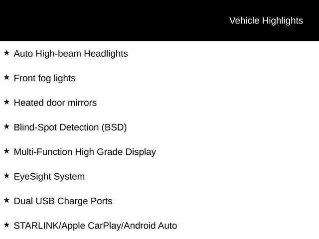 Highlighted by a suite of advanced technologies, the Forester Premium boasts the Subaru Starlink 6.5" Multimedia Plus System, complete with Apple CarPlay and Android Auto integration. Enjoy seamless connectivity, hands-free calling, and easy access to your favorite music and navigation apps. The panoramic power moonroof and Blind Spot Detection with Rear Cross-Traffic Alert further enhance your driving enjoyment, while the Power Rear Gate provides effortless access to the spacious cargo area.