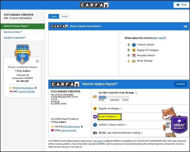 The Subaru Forester's 2.5L 4-Cylinder DOHC 16V engine, paired with the Lineartronic CVT and Symmetrical All-Wheel Drive, delivers an exceptional blend of power and efficiency. With an EPA-estimated 26 MPG in the city and 33 MPG on the highway, this Forester offers the versatility and capability you need for your daily commute and weekend adventures.