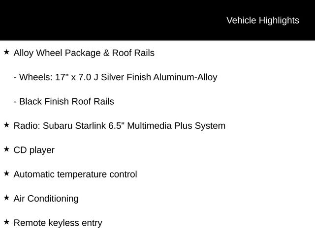 ⢠Radio: Subaru Starlink 6.5" Multimedia Plus System