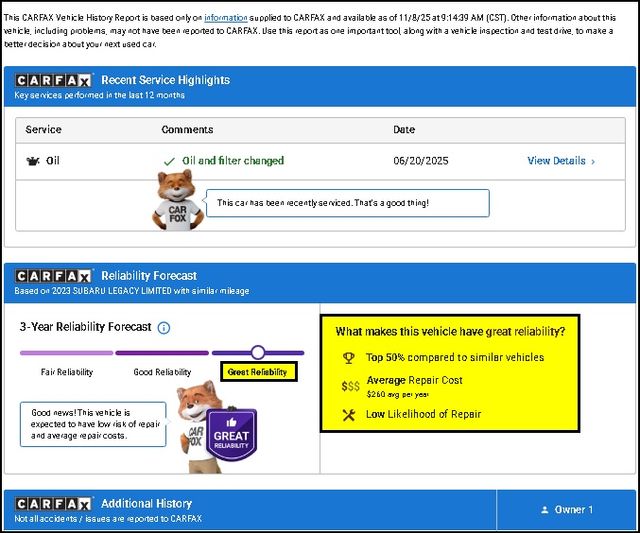 Safety is of the utmost importance, and this Legacy Limited delivers with a comprehensive suite of advanced safety features. Enjoy the peace of mind of the Emergency Communication System: STARLINK Safety Plus, Rear-View Camera, and Blind-Spot Detection with Lane Change Assist and Rear Cross-Traffic Alert.
