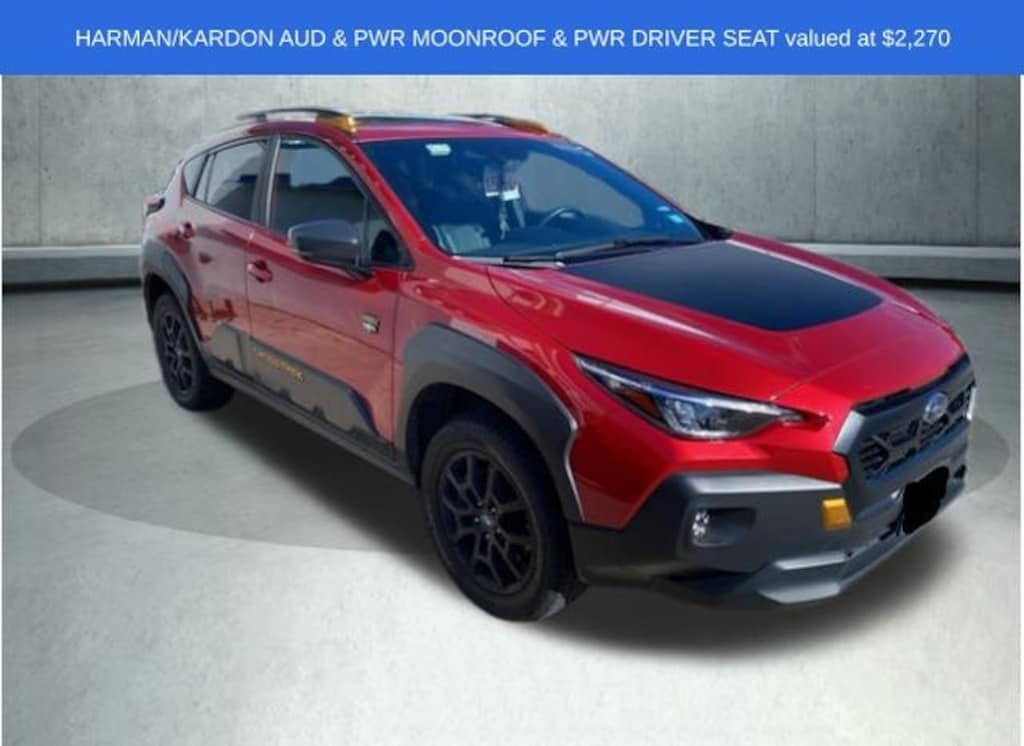 Beyond its impressive performance, the Crosstrek Wilderness also boasts a stunning exterior in a bold Red color, complemented by a wealth of premium features that elevate the driving experience. From the heated front seats and power moonroof to the advanced Harman/Kardon sound system, this vehicle is designed to keep you comfortable, connected, and entertained on every journey.