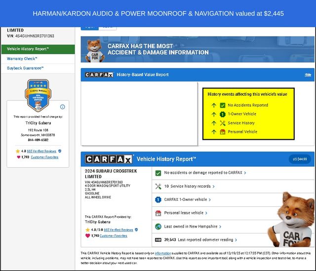 Step inside and be captivated by the Crosstrek's premium cabin, featuring luxurious leather-trimmed upholstery and a host of advanced technologies. The Subaru STARLINK 11.6" Multimedia Plus System with Navigation puts the world at your fingertips, seamlessly integrating your smartphone through Apple CarPlay and Android Auto. Immerse yourself in the rich, enveloping sound of the harman/kardon Surround Sound Speaker System, elevating every drive.