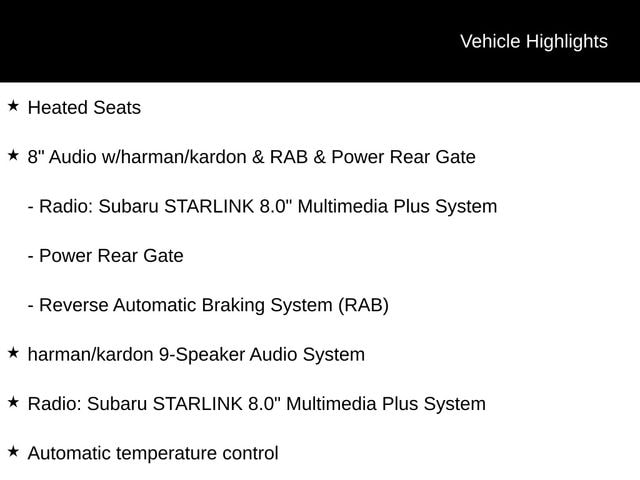 The Forester Sport's advanced technology doesn't stop there. Indulge in the exceptional sound quality of the harman/kardon 9-Speaker Audio System, and enjoy the convenience of the Subaru STARLINK 8.0" Multimedia Plus System, complete with features like voice-activated controls, smartphone integration, and SiriusXM radio.