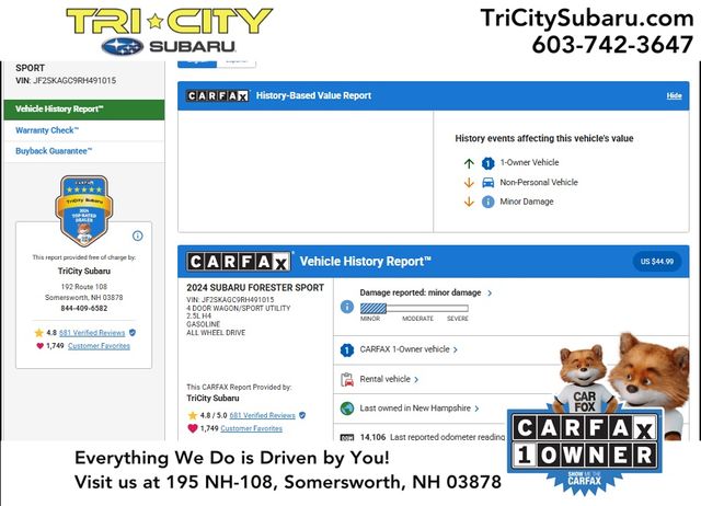 Tri-City Subaru is dedicated to your satisfaction before, during, and after your purchase. We'll go the extra mile to take care of you.