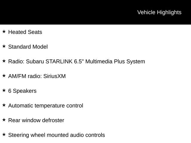 This Forester Premium also comes equipped with a host of premium amenities, such as a panoramic power moonroof, heated front seats, and a Subaru STARLINK 6.5" Multimedia Plus system with seamless smartphone integration. The spacious and versatile interior offers ample room for your passengers and cargo, while the sleek, modern exterior design turns heads wherever you go.
