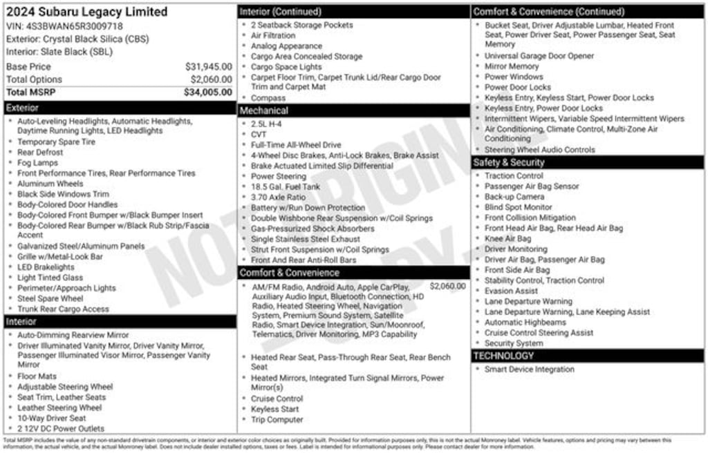 In closing, the 2024 Subaru Legacy Limited is a true masterpiece, blending cutting-edge technology, exceptional performance, and unparalleled comfort. Don't miss your chance to make this stunning sedan your own. Contact us today to learn more and take the first step towards driving home in your dream car.