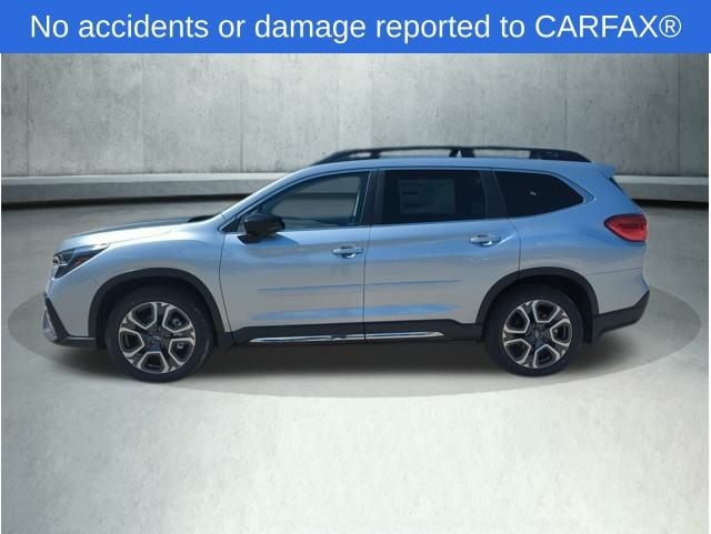 2025 Subaru Ascent Limited Ice Silver Metallic 14 Speakers, 3rd row seats: bench, AM/FM radio: SiriusXM with 360L, Apple CarPlay & Android Auto, Auto-dimming Rear-View mirror, Emergency communication system: MySubaru Safety (3-year free trial), Front dual zone A/C, Front fog lights, Fully automatic headlights, Garage door transmitter: HomeLink, harman/kardon® Speakers, Heated Front Bucket Seats, Heated rear seats, Heated steering wheel, Memory seat, Navigation System, Perforated Leather-Trimmed Upholstery, Power driver seat, Power Liftgate, Power moonroof, Power passenger seat, Radio: Subaru 11.6" Multimedia System w/Navigation, Rear air conditioning, Rear window defroster, Reclining 3rd row seat, Remote keyless entry, Speed control, Split folding rear seat, Steering wheel mounted audio controls, Telescoping steering wheel, Tilt steering wheel, Turn signal indicator mirrors, Wheels: 20" x 7.5 J Dk Gray Alloy w/Machine Finish. Clean CARFAX. Odometer is 903 miles below market average!