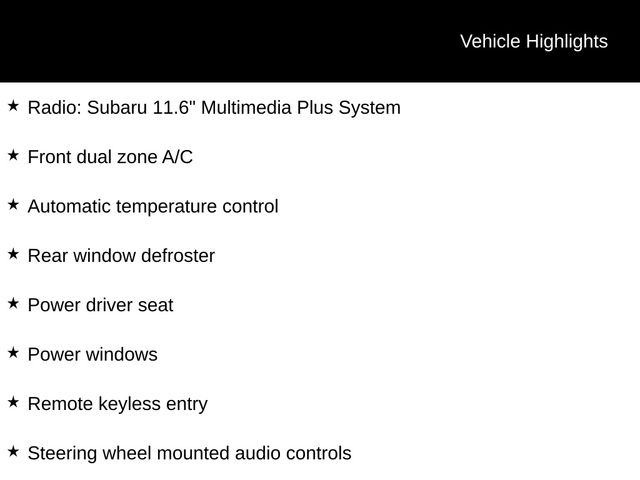 Step inside the Crosstrek Limited and you'll be greeted by a spacious and well-appointed interior, featuring premium leather-trimmed upholstery, a power driver's seat, and a Subaru 11.6" Multimedia Plus System with integrated navigation and smartphone connectivity. The dual-zone automatic climate control, heated front seats, and power moonroof further enhance your comfort and convenience.