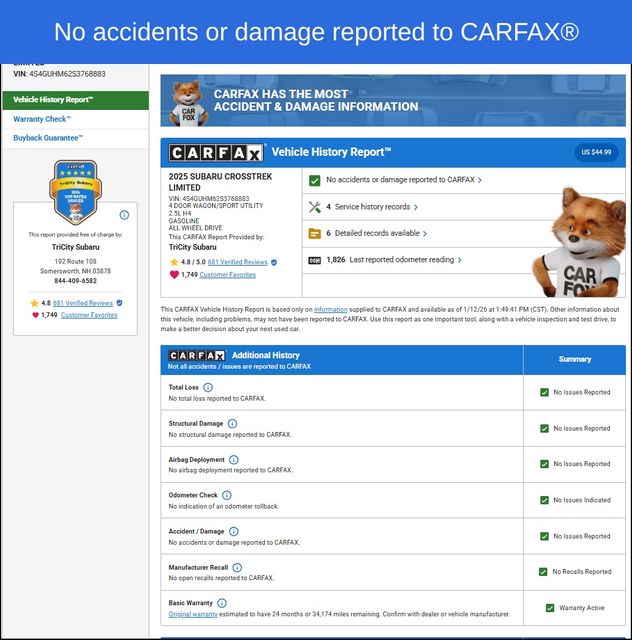 Boasting an impressive array of features, the Crosstrek Limited is designed to elevate your driving experience. Highlights include: